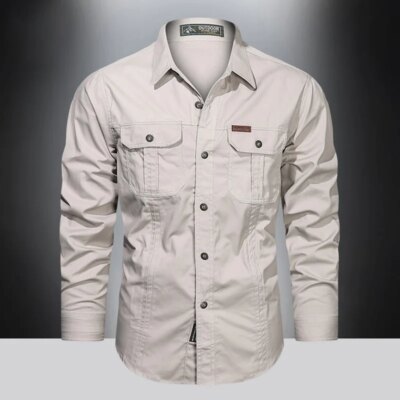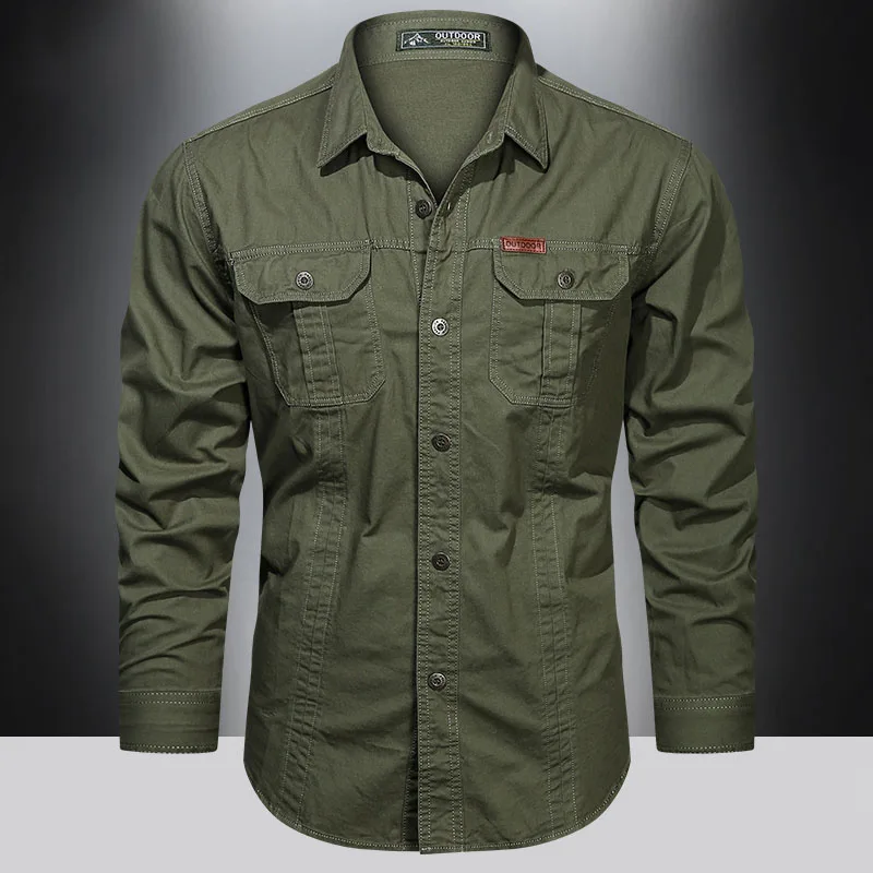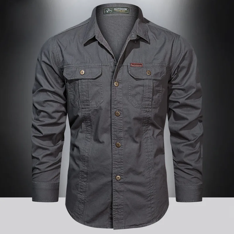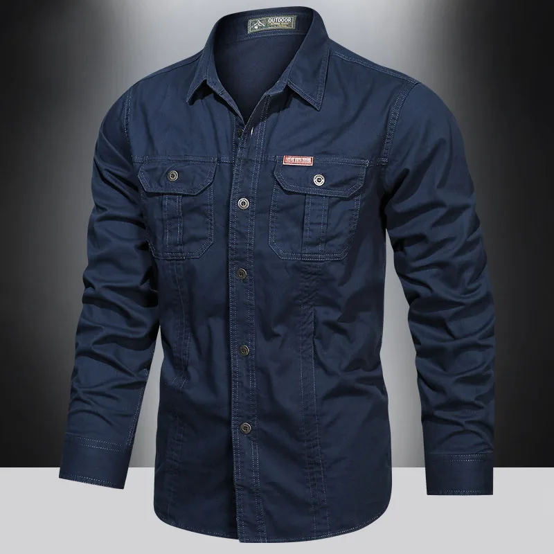 2023 Cargo Shirt Men Long Sleeve Casual Cotton Shirts High Quality Camisa Militar Overshirt Brand Clothing Black Blouses 5XL