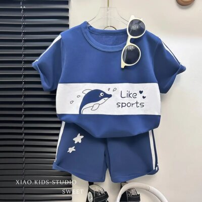 2024 New Kids Short Sleeve Suit Striped Girls Boys Set Summer Tops +short Baby Clothes Children’s Wear