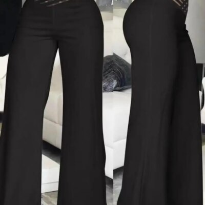 2024 Women Wide Leg Flared Pants Autumn Casual Crisscross Sheer Mesh Patch High Waist Trousers Y2k Streetwear Elegant Work Pant