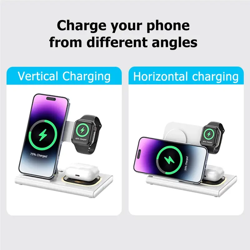 3 in 1 Wireless Charger Stand Pad For iPhone 15 14 13 12 Samsung S23 S22 Galaxy Watch 5 4 Active Buds Fast Charging Dock Station