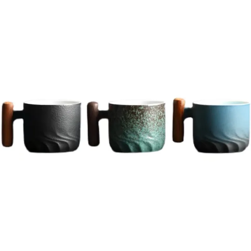 80ml Ceramic Retro Coffee Cup Office Water Cup Filter Tea Mug Wooden Handle Coffee Mug Handmade Tea Coffee Cup Birthday Gift