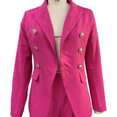 BAMBOOBOY Office Lady Women Blazer Suits Long Sleeve Turn-Down Neck Blazer+ Shorts Summer Street Wear 2 Pieces Sets with Button