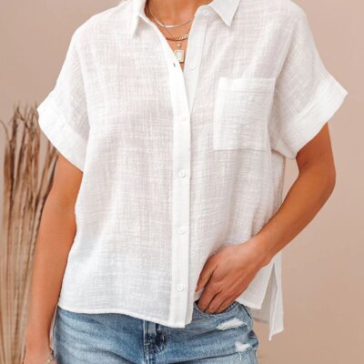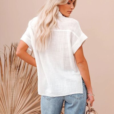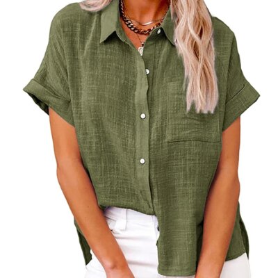 Casual Solid Short Sleeve Cotton Linen Loose Blouse Vintage Harajuku Oversized Shirt Elegant Tunic Summer Tops Women 2022