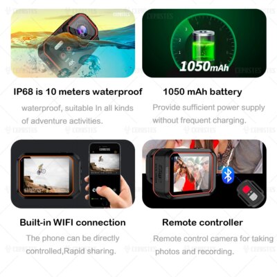 CERASTES Action Camera 4K60FPS With Remote Control Screen Waterproof Sport Camera drive recorder Sports Camera Helmet Action Cam