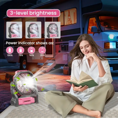 Charging + Lighting + Fan Three-In-One Electric Camping Style Fan with Led Lantern Portable Tent Fan with Rotating Function, Emergency Power Supply Function When Power Outage, Suitable for Barbecue or Travel Operating