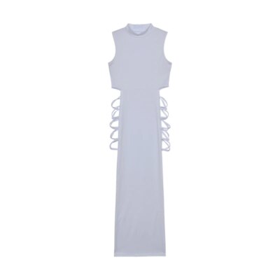 Criss Cross Cut Out Dress, Sexy Bodycon Mock Neck Sleeveless Dress, Women’s Clothing