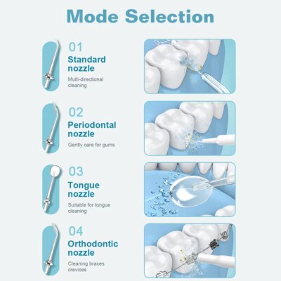 Portable Teeth Whitening Water Flosser, the perfect solution for maintaining a healthy and sparkling smile on-the-go. Equipped with a powerful dental water jet, this oral irrigator effectively removes plaque and food debris from hard-to-reach areas, ensuring a thorough clean. Its waterproof design ensures durability and ease of use, while the 300ML capacity tank allows for extended use without the need for frequent refills. Additionally, our water flosser features teeth whitening capabilities to brighten your smile. Compact and lightweight, it's ideal for travel or daily use at home. Order now and experience the difference!