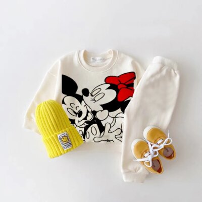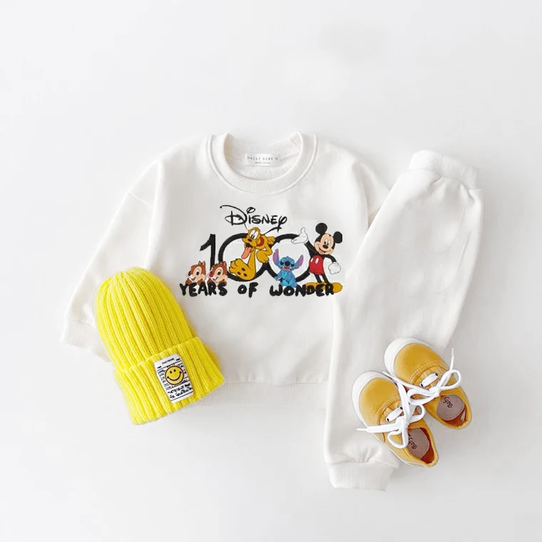 Disney Hoodies Baby Unisex Two Piece Sets Cartoon Print Long Sleeve Tops +Trousers Suit Toddler Boys Casual Sweatshirts Outfits
