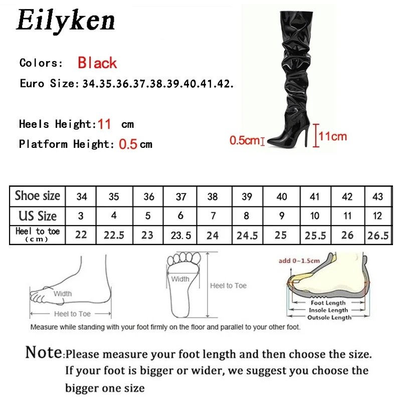 Eilyken Red Women Over The Knee Boots High Heels Patent Leather Solid Pointed Toe Stiletto Side Zipper Sapatos Femininos