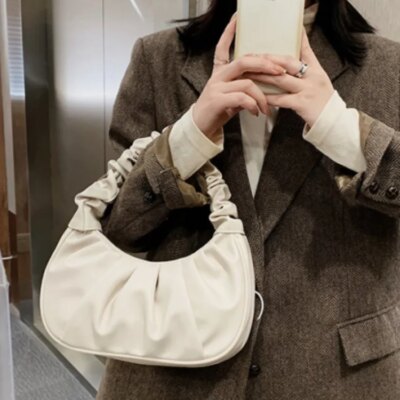 Fashion Pleated Handlebags for Women PU Cloud Bags Leisure Armpit Bag Shopping Shoulder Bags Dumpling Handbag Female Hand Bags