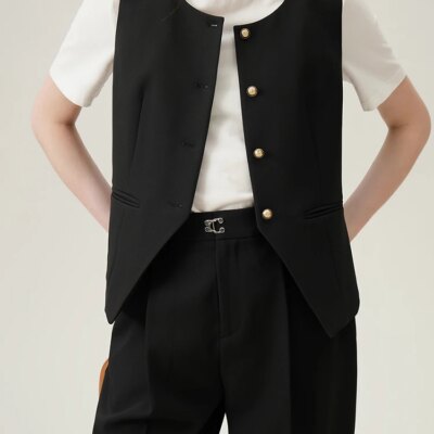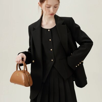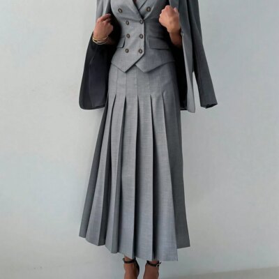 FSLE Women Blazer Temperament Suit Jacket for Office Lady Sets Formal Female Blazer Vest Skirt 24FS11075