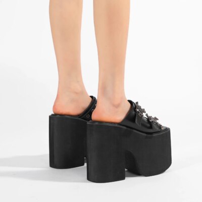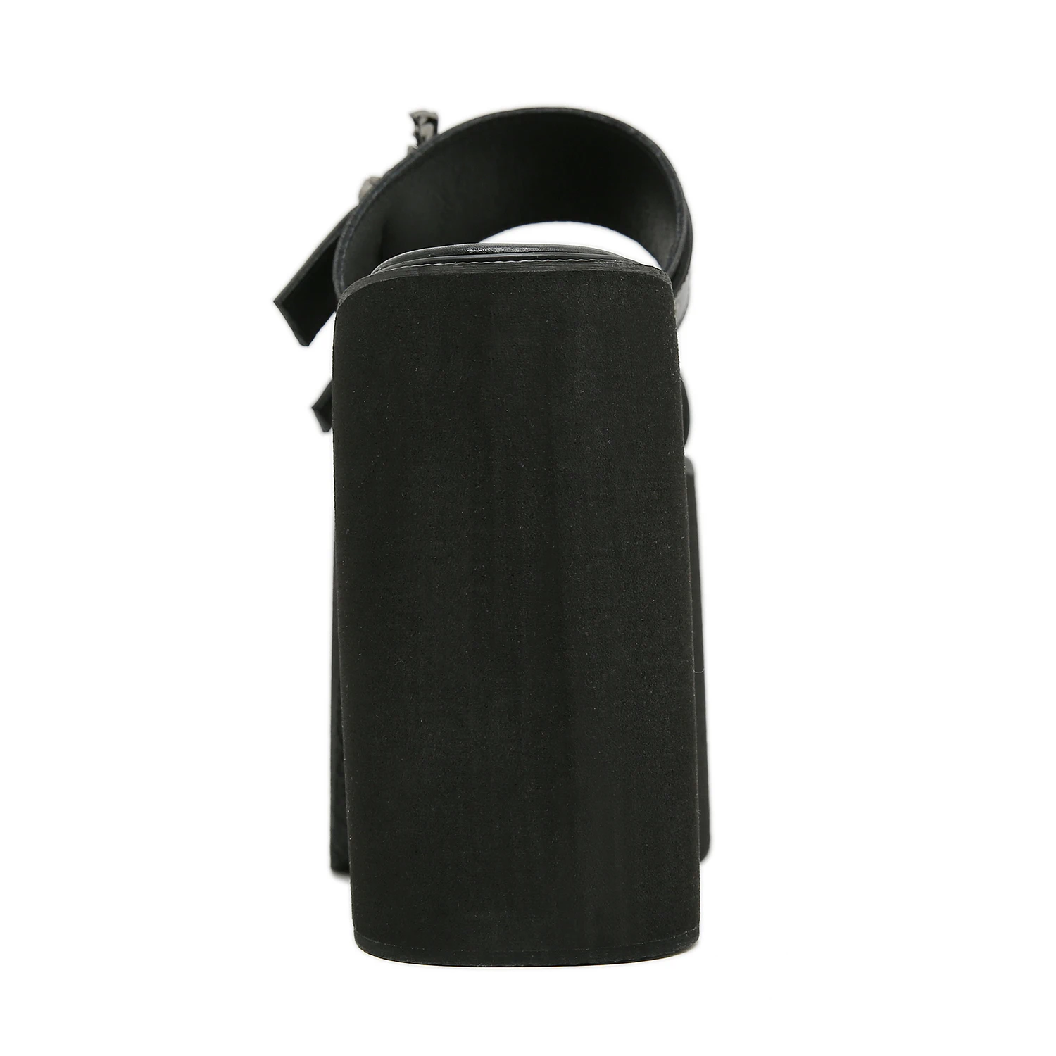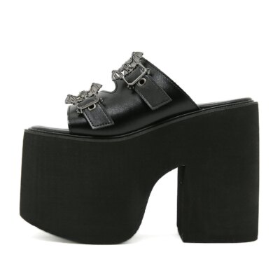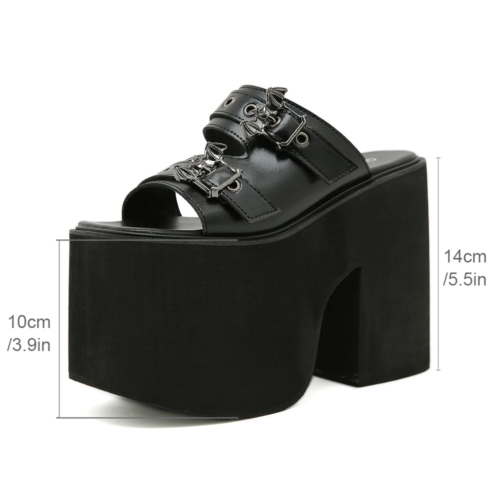 Gdgydh Goth Bat Buckle Decor Platform Slippers for Women Fashion Open Toe Summer Shoes Slip On Heeled Sandals Slingback Outdoor