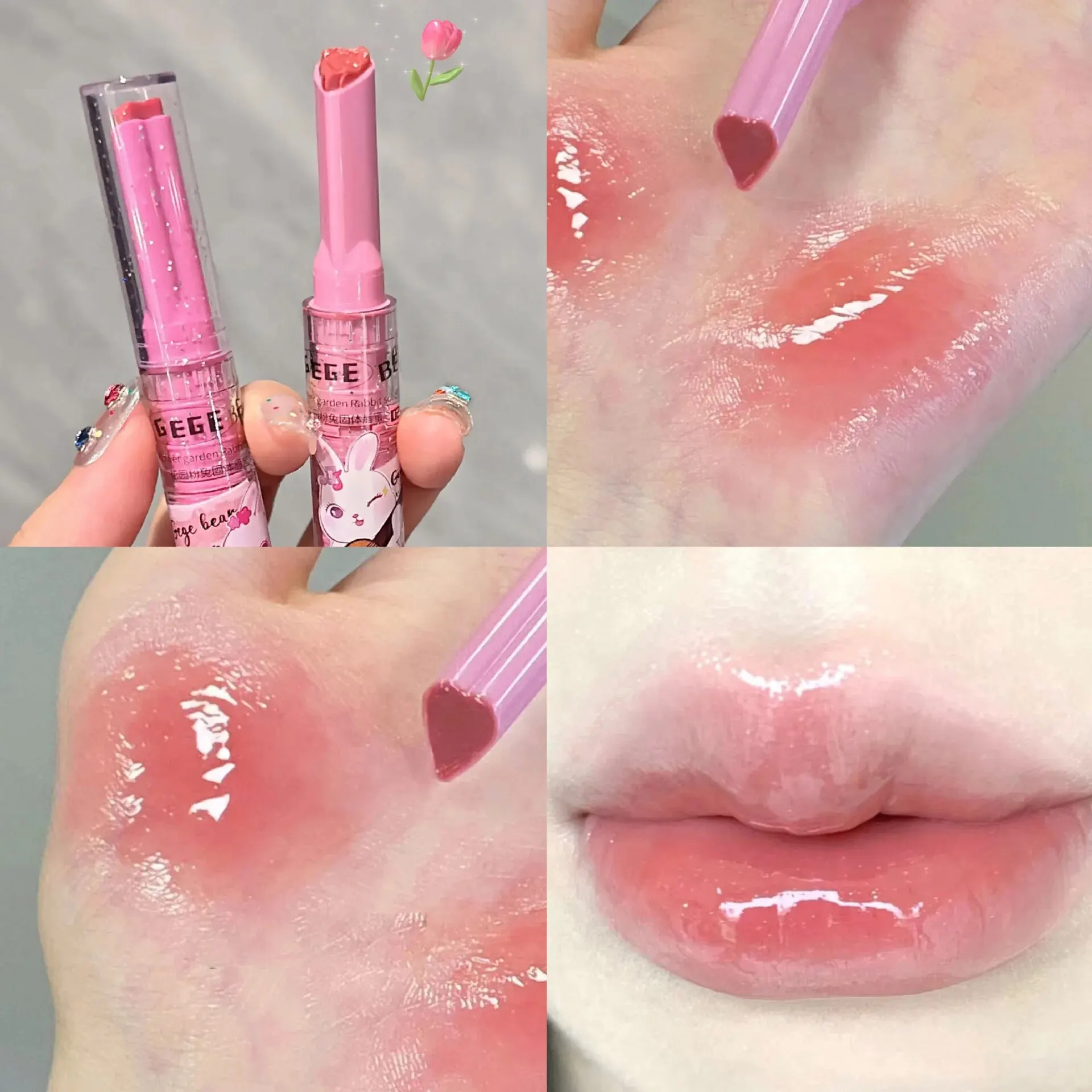 Gege Bear Garden Pink Rabbit Solid Lip Gloss Moisturizing Watery Colored Lip Balm Long-lasting and Tender Lip Balm