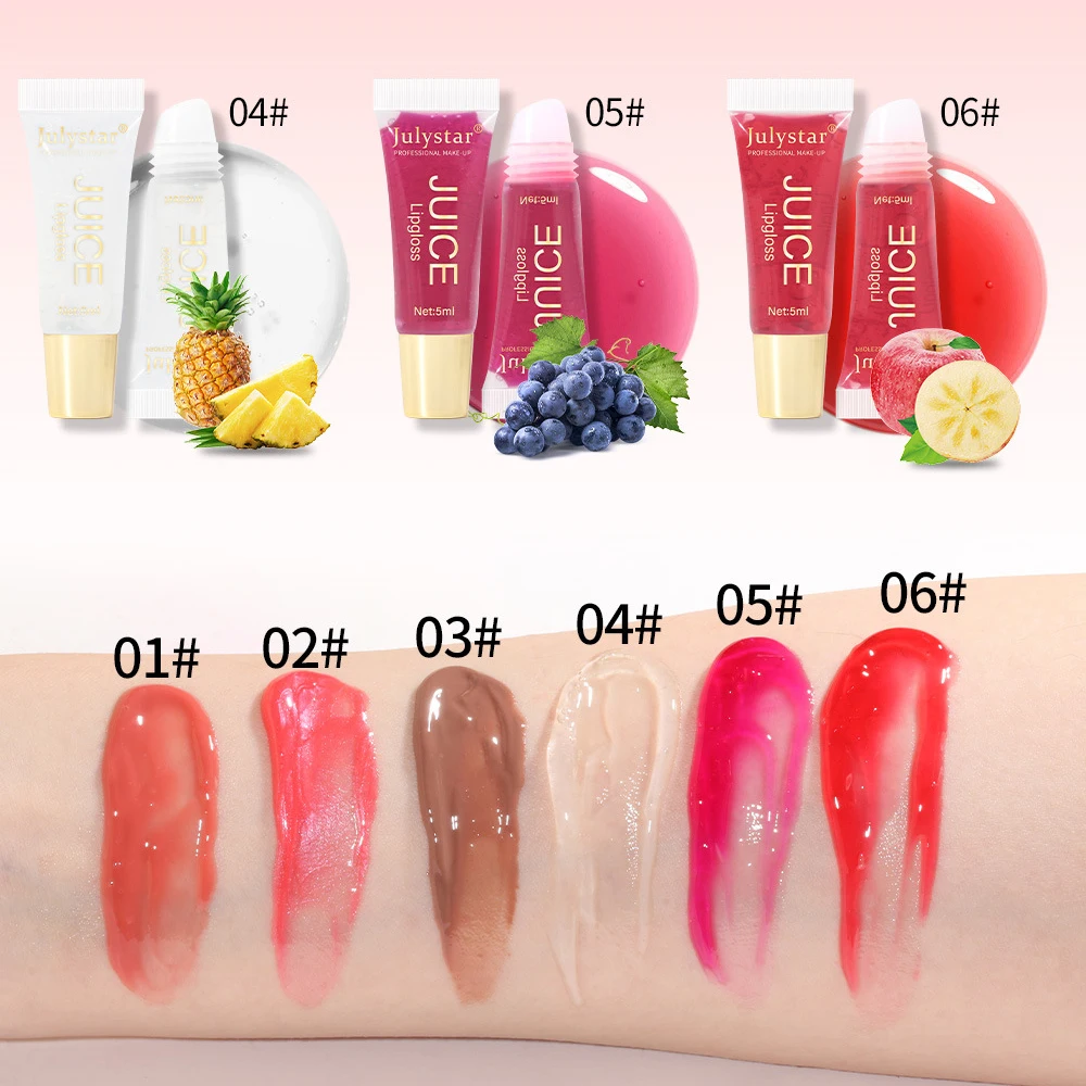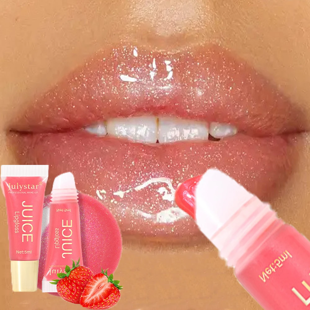 Glitter Plumping Lip Gloss Jelly Strawberry Moisturizer Fruit Lip Oil Transparent Fullness Lip Tint Gel Soft Tube Makeup LipCare