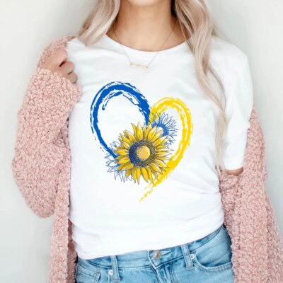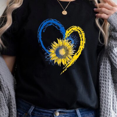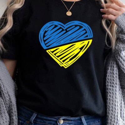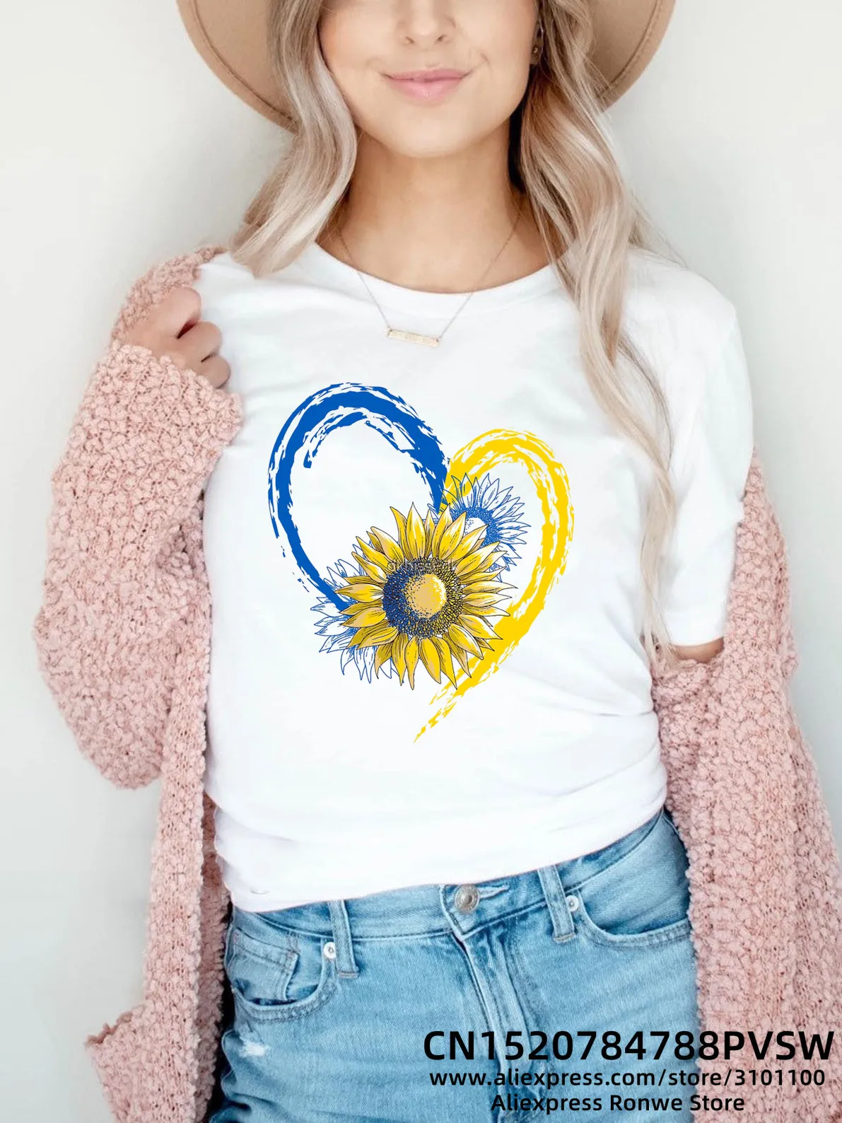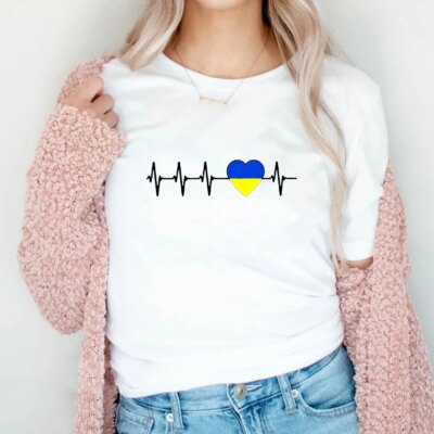 Heartbeat Blue Yellow Women Print T-shirt Girl Y2K Short Sleeve Tee Tops Lady 90S Sweetshirts Female Harajuku Clothing