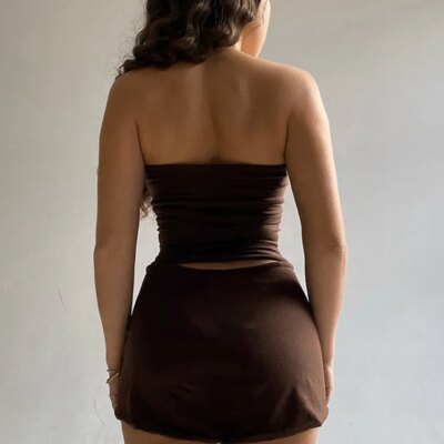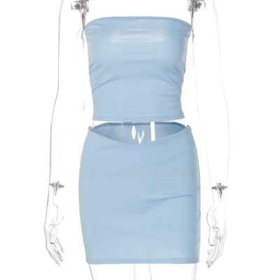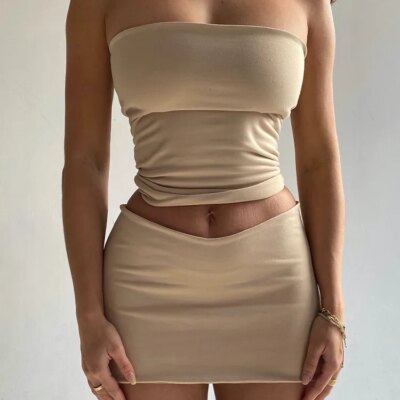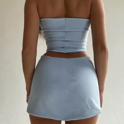 Hugcitar Solid Sleeveless Folds Tube Crop Top Skirts 2 Piece Matching Set Summer Fashion Streetwear Beach Clothing Drop Shipping