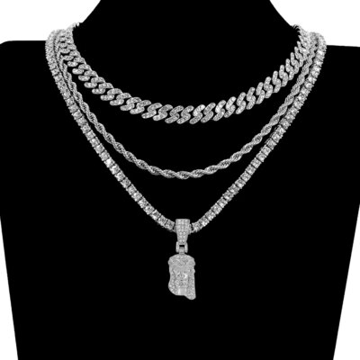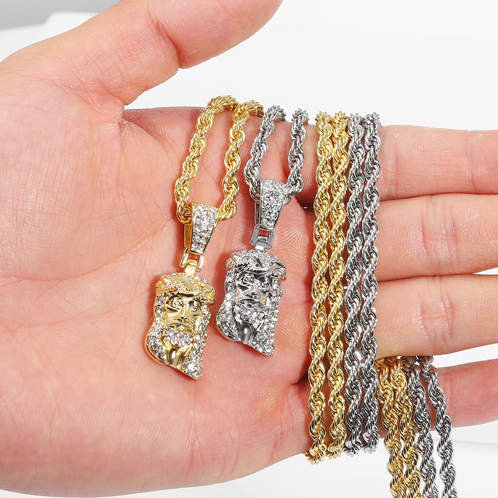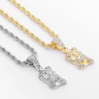 Jesus Christ Piece Head Face Pendant For Men Iced Out Shining Crystal Charm Necklace With Chain Hip Hop Jewelry