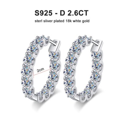 KNOBSPIN 2.6ct D Color Moissanite Earring 925 Sterling Sliver Plated White Gold Hoop Earring for Women Wedding Party Jewelry