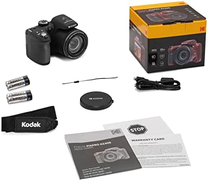 Compatible Mountings KODAK PIXPRO Sensor Type BSI CMOS Image stabilization Optical Maximum Aperture 3 f Expanded ISO Minimum 80 Photo Sensor Resolution 20 MP Photo Sensor Size 1/2.3-inch Maximum Shutter Speed 1/2000 seconds Minimum Shutter Speed 30 seconds Form Factor Compact Special Feature Image Stabilization Color Black Item Weight 15.37 Ounces Video Resolution 1080p Viewfinder Optical Flash Modes Red Eye Reduction, Fill In, Slow Sync, Off, Slow Sync/Red-Eye Reduction, Automatic Camera Flash Built-In Skill Level Novice Specific Uses For Product Photography Continuous Shooting 30 fps Aperture modes F3.0 Expanded ISO Maximum 3200 Delay between shots 0.03 seconds Battery Cell Type Alkaline Battery Type Alkaline Item Width Side To Side 3.32″D x 4.5″W x 3.21″H Number of Batteries 4 AA batteries required. (included) Has Image Stabilization Yes Audio Recording No