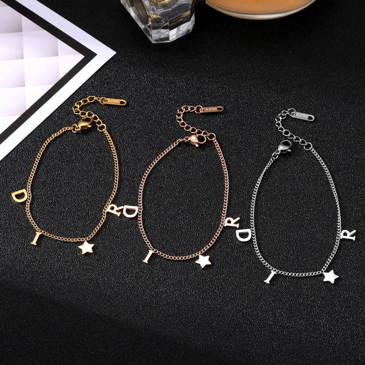 Korea New Fashion Letter Star Pendant Bracelet Woman Simple Vintage Stainless Steel Bracelet Luxury Jewelry Accessories Gifts