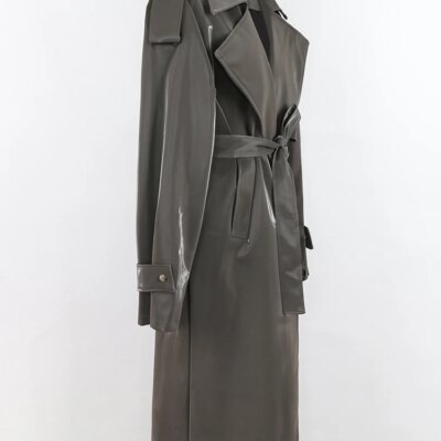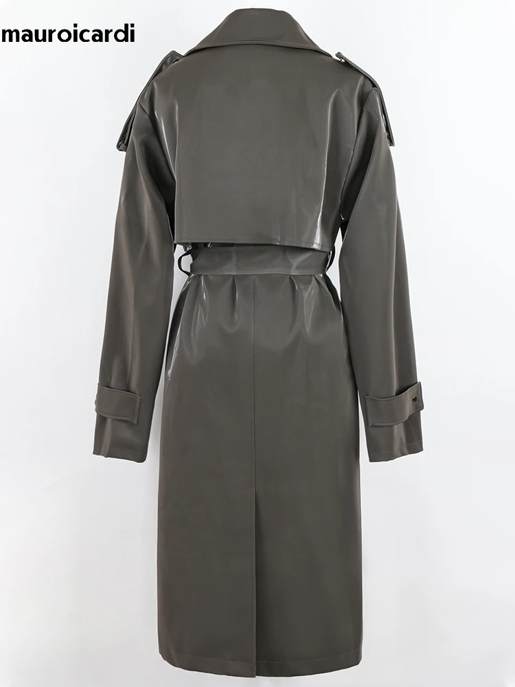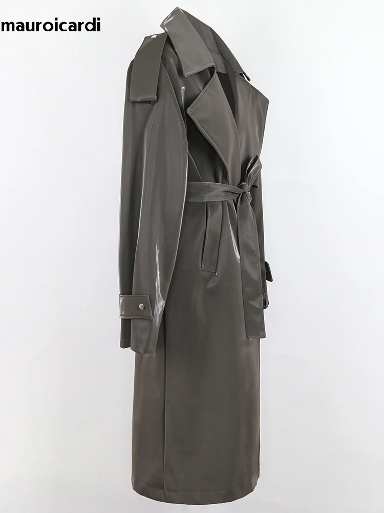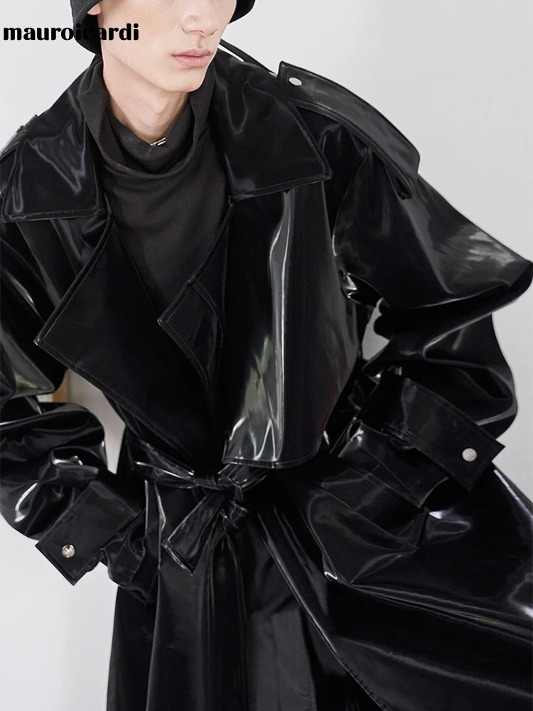Mauroicardi Brand Long Oversized Luxury Reflective Shiny Patent Leather Trench Coat Men Fashion 2022 Belt Waterproof Rain Coat