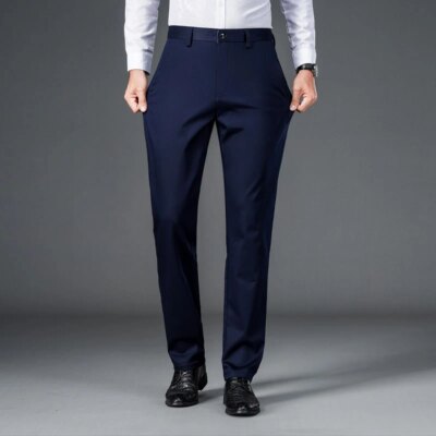 Men’s lightweight business casual pants with micro elasticitymen’s quick drying pantsnew straight leg office black deep bluepant
