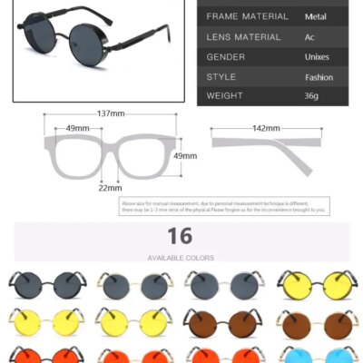 Metal Steampunk Sunglasses Men Women Fashion Round Glasses Brand Designer Vintage Sun Glasses High Quality Oculos de sol 2021