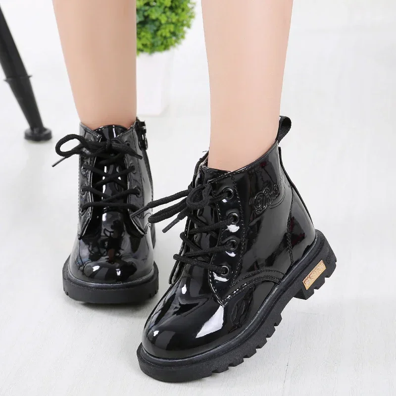 New Children Shoes Boots for Children Size 21-37 Boots for Girl PU Leather Waterproof Winter Kids Snow Shoes Girls Boots