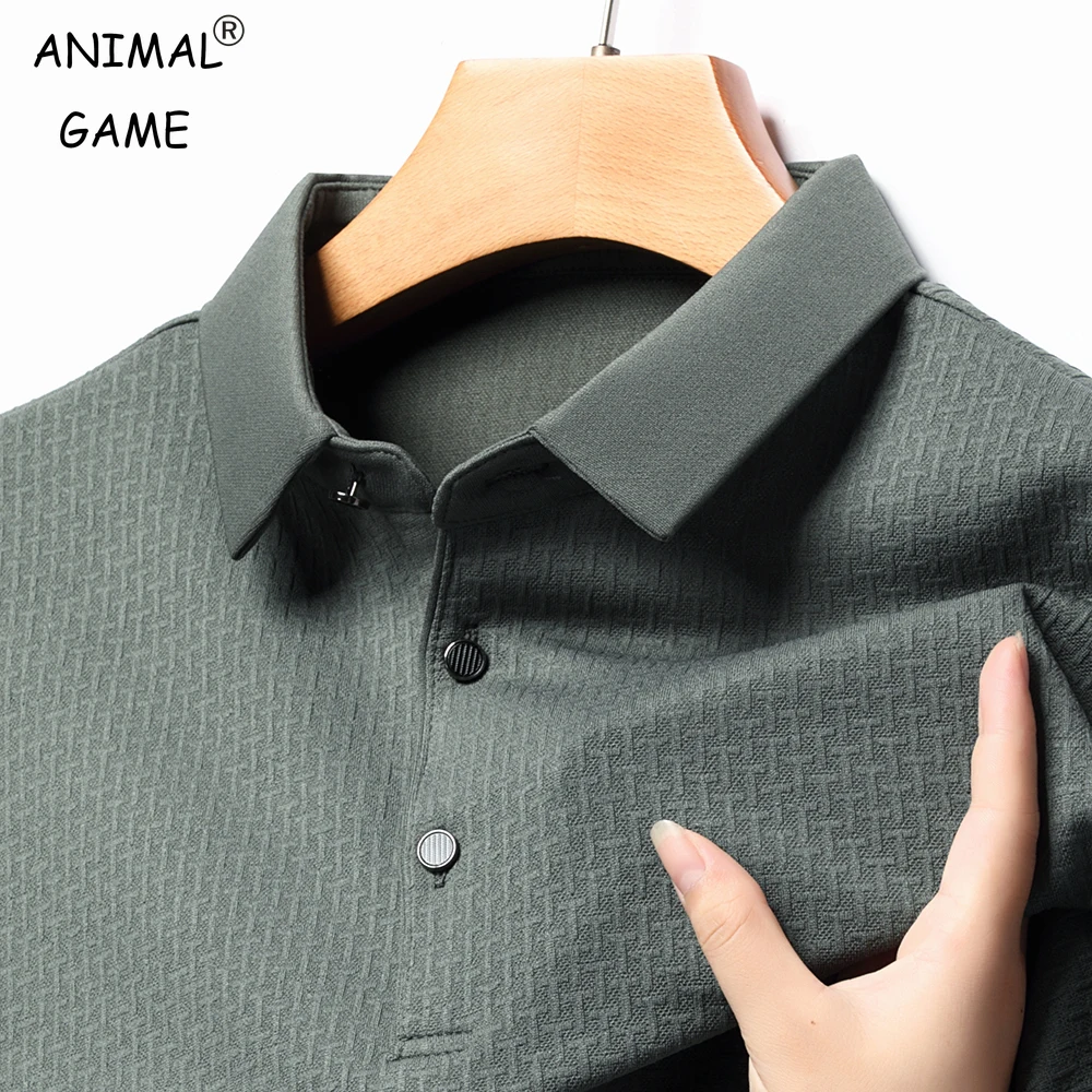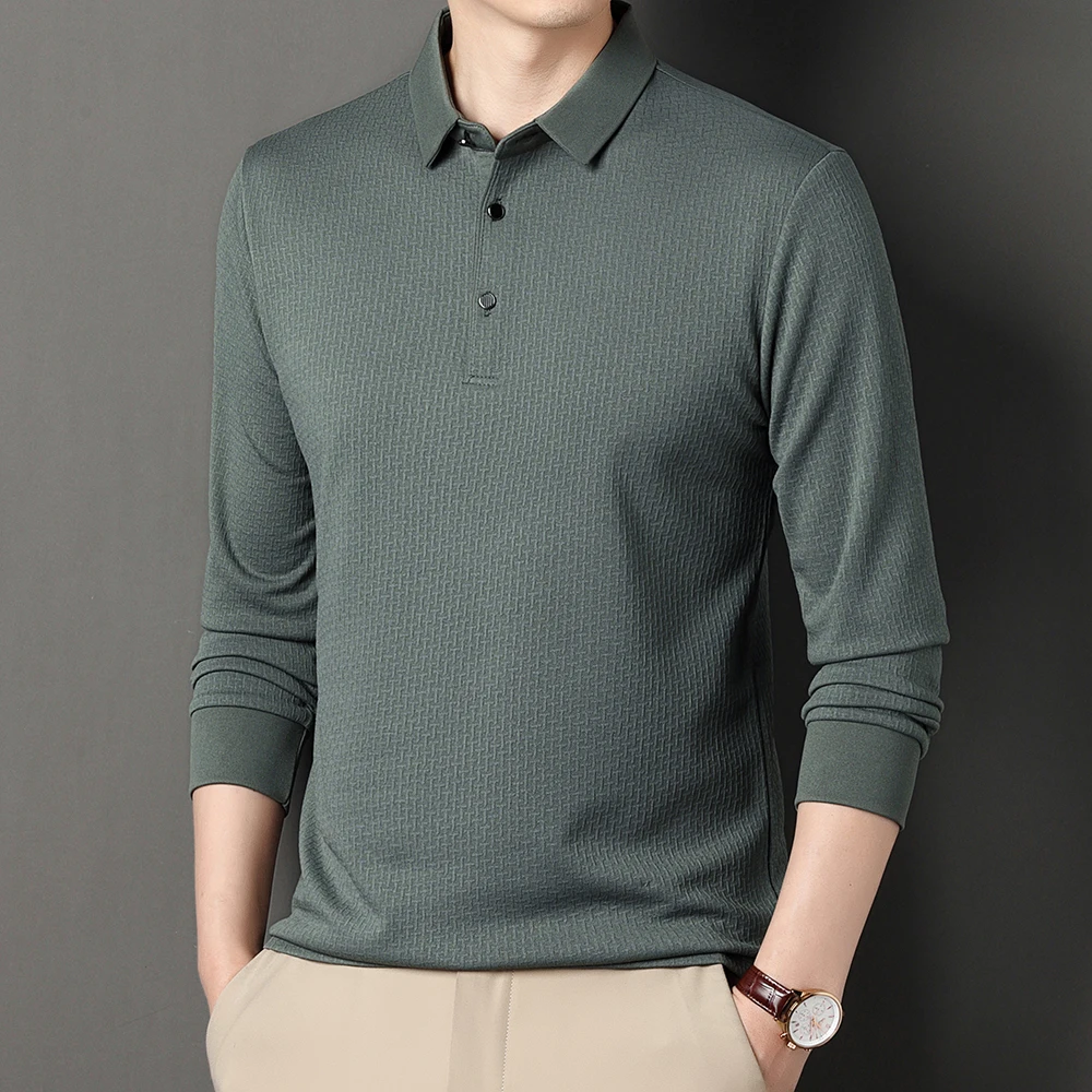 New Men’s Lop-up Hollow Long-sleeved Polo Shirt Breathable Business Fashion T-Shirt Male Golf T-Shirt Male 4XL