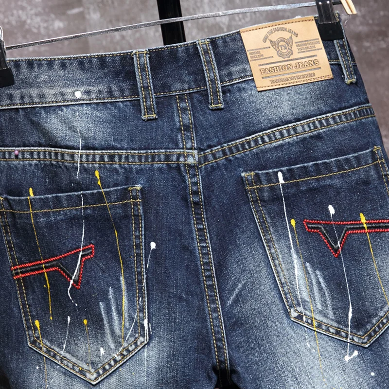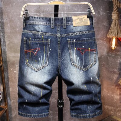 Retro Summer Men Graffiti Ripped Denim Shorts Jeans Destroyed Hole Plus Size Fifth Pants Shorts Male Brand Clothes