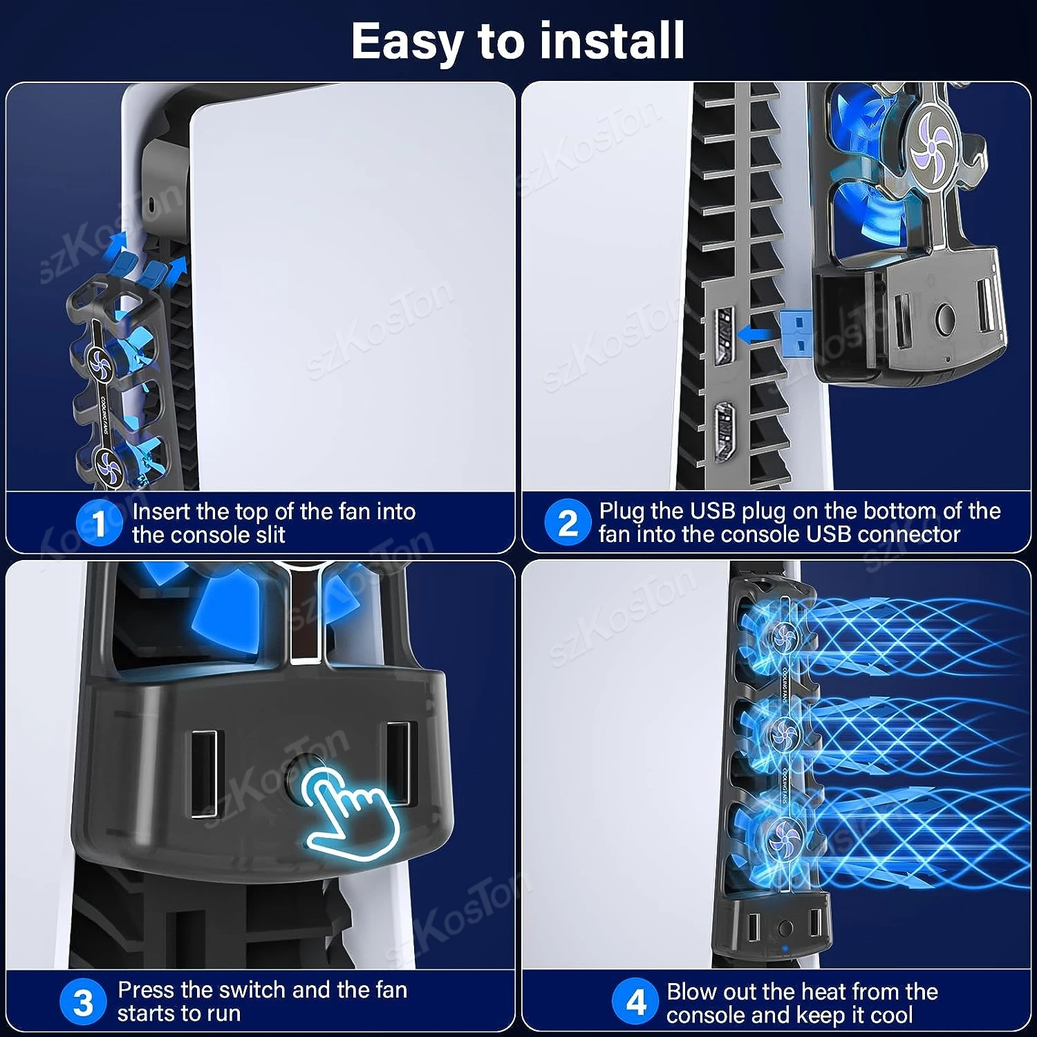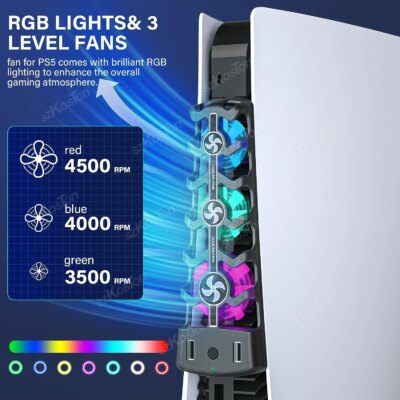 RGB Cooling Fan for PS5 Efficient Cooling System 3-Speed Quiet Cooler Fans for PS5 Console Accessories Disc and Digital Edition