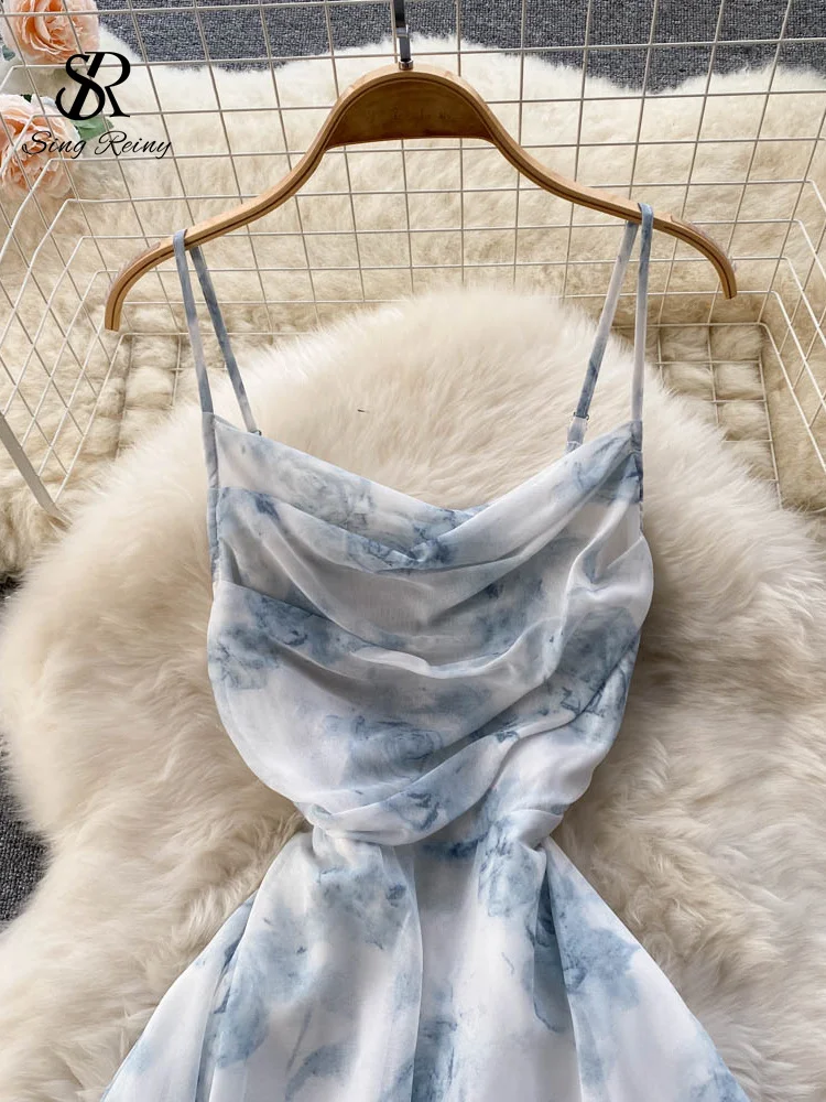 SINGREINY Women Floral Spaghetti Strap Dress Elastic Ruched Sexy Hollow Backless Party Dress Summer Boho Vacation Beach Sundress