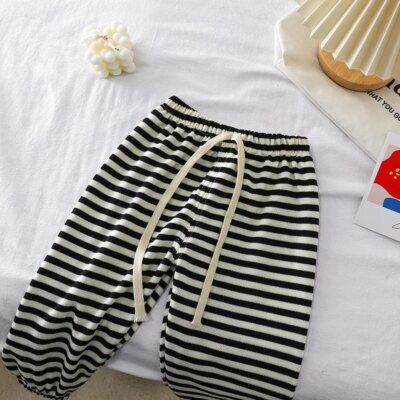 Summer New Children Korean Anti-mosquito Pants For Boys And Girls Baby Casual Striped Outside Ankle-length Sports Pants
