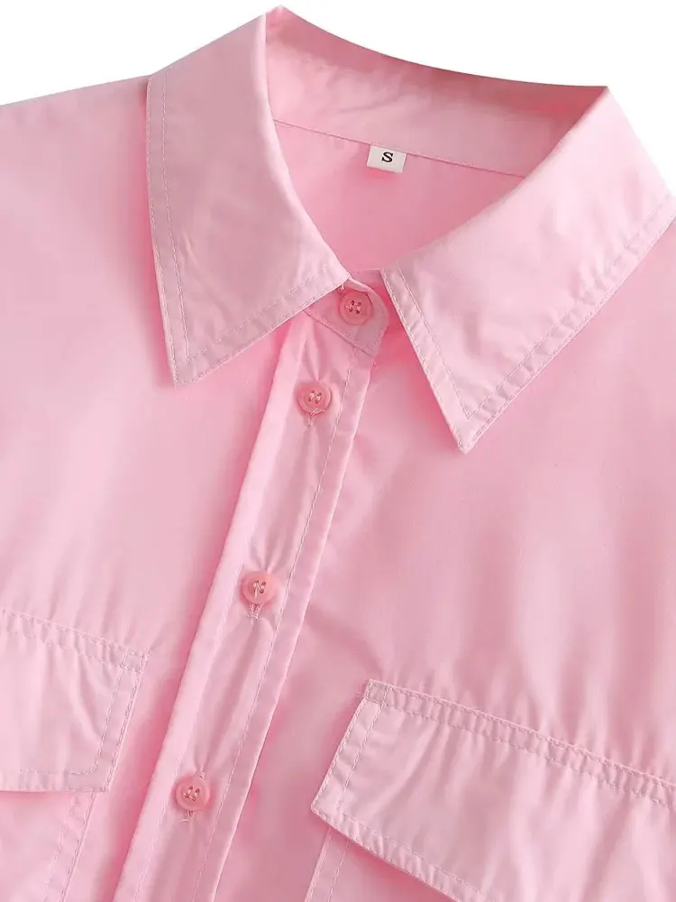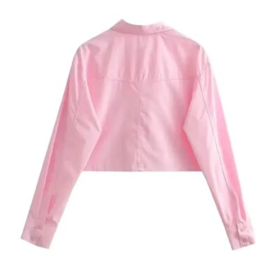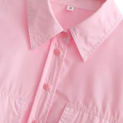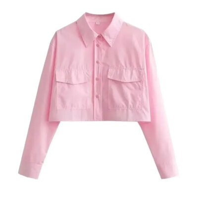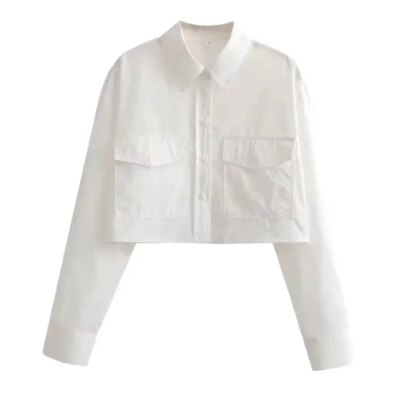 TRAF Women Fashion With Pockets Loose Cropped Poplin Shirts Vintage Long Sleeve Button-up Female Blouses Blusas Chic Tops