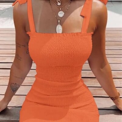 Trendy Solid Strap Short Dresses Off Shoulder Sexy Skirt Pullover Slim Fit Mini Summer Beach Female Vest Dress