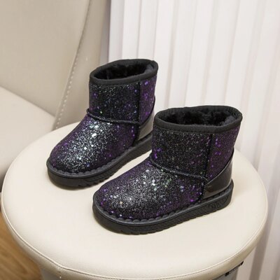 Winter Girl’s Snow Boots Glimmer Three Colors Thick Fur Kids Short Boot Warm Beautiful Stylish Slip-on Children Shoes 25-36